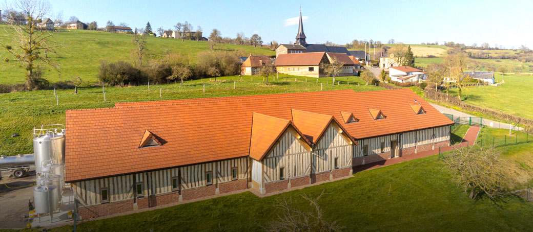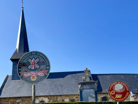 The Clos de Beaumoncel cheese factory was built in the classic Normandy timber style and opened in August 2021. Producing up to 6000 organic and AOP/PDO Camemberts a week. The milk coming from the 115 dairy cows on the nearby Vimer farm. Camembert is produced throughout the region by small artisan cheesemakers to large industrial factories producing 000's of cheeses for the French supermarkets and for export around the world. The Clos de Beaumoncel factory is open to visitors and if you visit in the morning you can view the process through large glass windows as the cheese makers produce the camembert ready for ageing until placed into the wooden boxes. Close to the factory is a museum educating visitors to the original process through to todays cheese making method. After visiting the museum you can visit the Maison du Camembert where you can purchase and sample different camemberts.