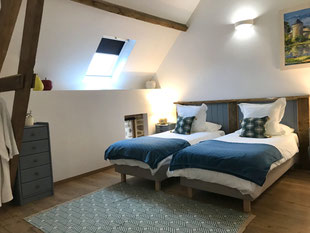 Each gîte in our renovated barn is for two people and both are around 60m2 each over two floors. Downstairs is an open plan sitting room, dining area and kitchen with a wood burner. Stairs lead to the underfloor heated bedroom with its own en-suite bathroom. The bedrooms have vaulted ceilings with exposed oak beams. To enable you to have a fantastic night’s sleep each bedroom has a Super King-size bed. For a twin room arrangement, the bed can be split to create 2 single beds.( Please let us know if you would prefer this option) Although the building has been renovated to create modern accommodation, we have maintained the characteristics of the old barn with original elements being recycled and renovated to become features.